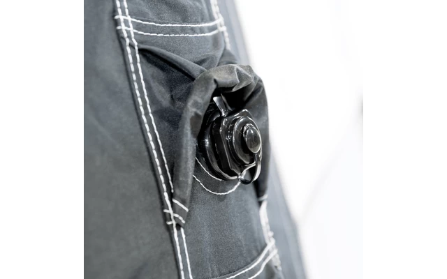 - Einpunkt-Aufblassystem: Vorzelte mit Einpunkt-Aufblassystem werden von nur einem externen Aufblaspunkt mit Luft befüllt