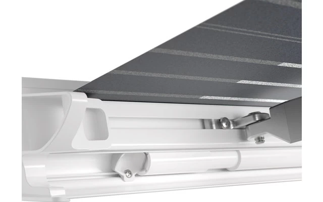Die Dometic Markise PerfectWall PW 1100 Weiß ist eine kompakte und robuste Wandmarkise mit einem neu entwickelten, formschönen Gehäuse ohne sichtbare Schrauben. Einfacher Aufbau durch nur eine Person. Neue, patentierte Slide-out-Stützfüße für eine komfortable Handhabung dieser Dometic Markise. Easy-Lock-Flipper zum Arretieren der Stützfüße. Robustes Markisentuch aus 90 % Polychlorid und 10 % Polyester mit durchsichtiger Acryl-Beschichtung. Die patentierte Spannstange der PW 1100 lässt sich platzsparend in der Frontleiste verstauen. Spannstange ab 4 m Markisenlänge im Lieferumfang enthalten.