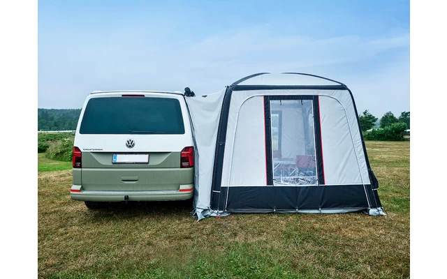 Isabella Air X-Tension bietet Ihnen die ultimative Freiheit im Campingurlaub. Durch das Luftgerüst wird ein schneller und einfacher Auf- und Abbau ermöglicht. Dadurch sind Sie in kürzester Zeit für die Weiterreise bereit. Entscheiden Sie sich für einen Aufenthalt am Campingplatz, kann das X-Tension-Luftvorzelt einfach als Platzhalter stehen bleiben, während Sie mit Ihrem Campingbus die Umgebung erkunden. Einfach die Schleuse vom Campingbus abmontieren (dauert gerade mal 1 – 2 Minuten) und die Rückseite des Zeltes mittels Reißverschluss verschließen. Das X-Tension wird mit Ihrem Campingbus über einen, speziell fürjedes Fahrzeugmodell angepassten Tunnel verbunden. Dieser Fahrzeugspezifische Tunnel sorgt dafür, dass das Luftvorzelt zu 99 % perfekt an Ihren Campingbus passt und gut abdichtet. Das Luftgerüst des X-Tension Busvorzeltes ist X-förmig und verfügt zusätzlich über Querstreben im Dach von Ecke zu Ecke für eine hohe Stabilität. Aufgepumpt wird es mit der im Lieferumfang enthaltenen Isabella Air-Luftpumpe. Das gesamte Busvorzelt lässt sich durch Pumpen an nur einem Aufblaspunkt aufstellen. Für einen schnelleren Abbau ist es von Vorteil, beide Luftventile zu verwenden.