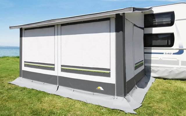 Das DWT Juwel III Teilvorzelt ist ein Pultdachzelt für alle Jahreszeiten. Für Wohnwagen mit einer Höhe von 240 – 258 cm. Vordach: ca. 25 cm.